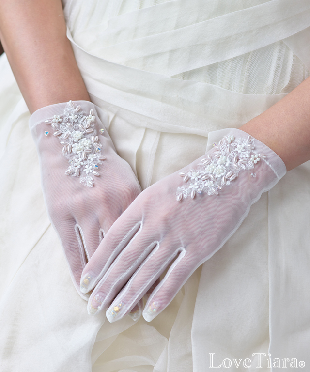 オーガンジーショートグローブ パール刺繍 ウェディングドレス 販売 ウェディングドレスショップシンデレラ